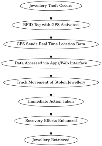 A simple graphical representation of How RFID and GPS Helps recover Stolen Jewels .